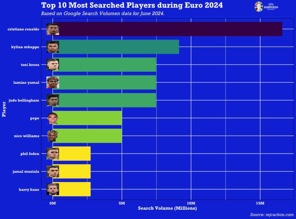But …. Does the pattern repeat itself if we look at the players and teams that have accumulated the most searches on Google, before and during the European Championship?