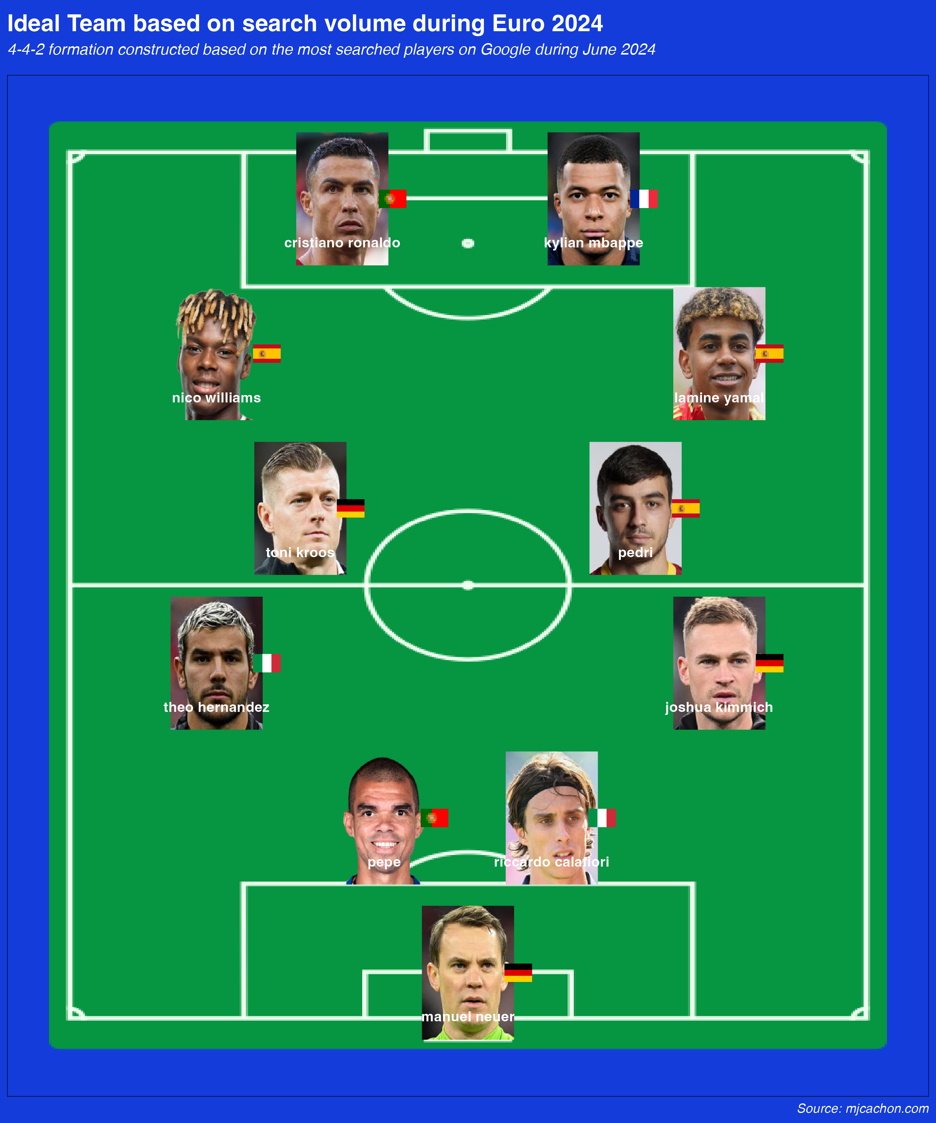If we were to build an ideal team based on the players who are most searched on Google, or who are most popular with the public, it would not perform badly in any competition in the world :)